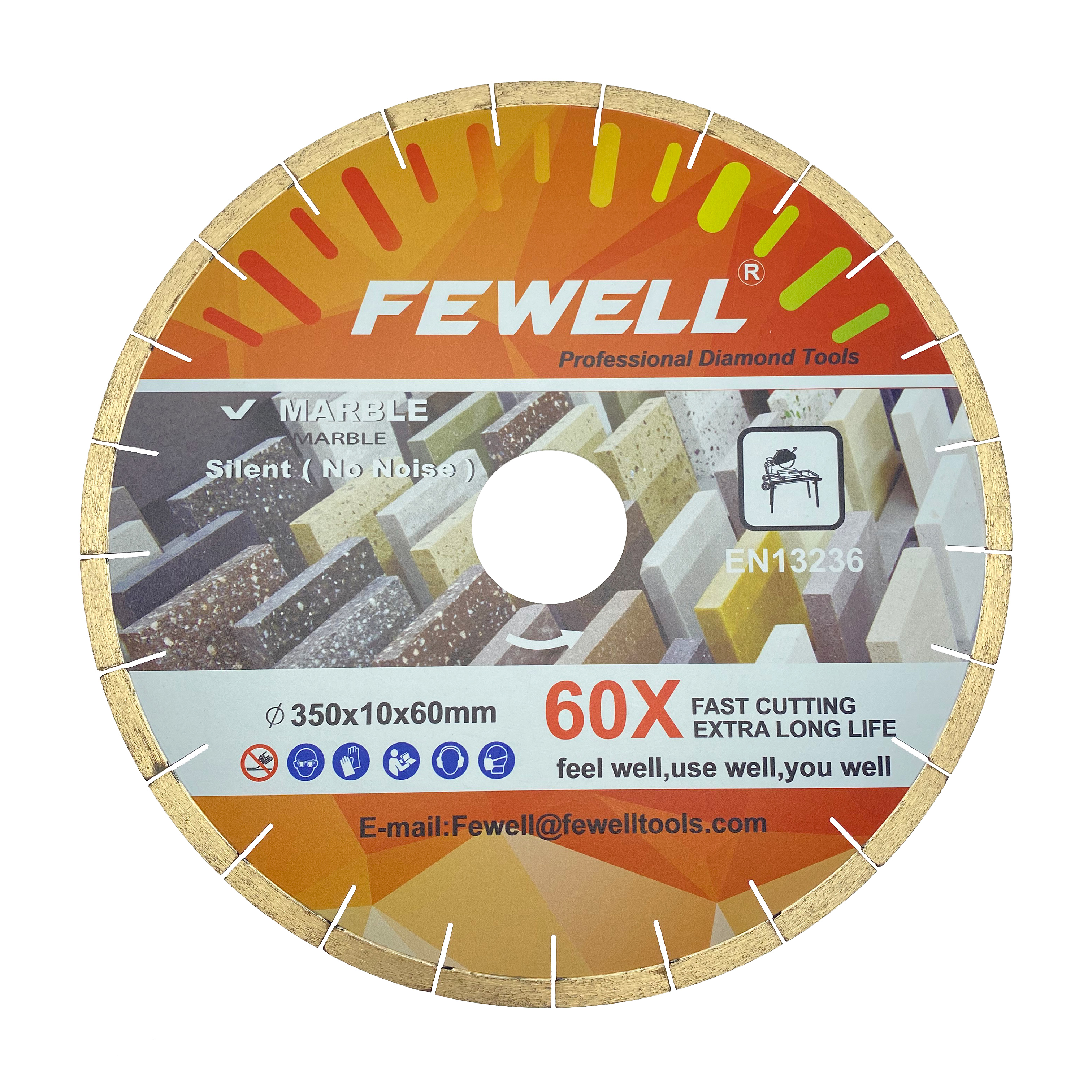 However, when sawing coarse-grained granite with uneven softness and hardness, the feed speed should be reduced, otherwise it will cause the saw blade to vibrate and cause the diamond to break and reduce the sawing rate. The feed speed of sawing granite is generally selected in the range of 9m ~ 12m/min. As the leader of the diamond tool industry, FEWELL Marble Saw Blade has been focusing on R&D and manufacturing the best sharp diamond saw blade in China for 27 years.